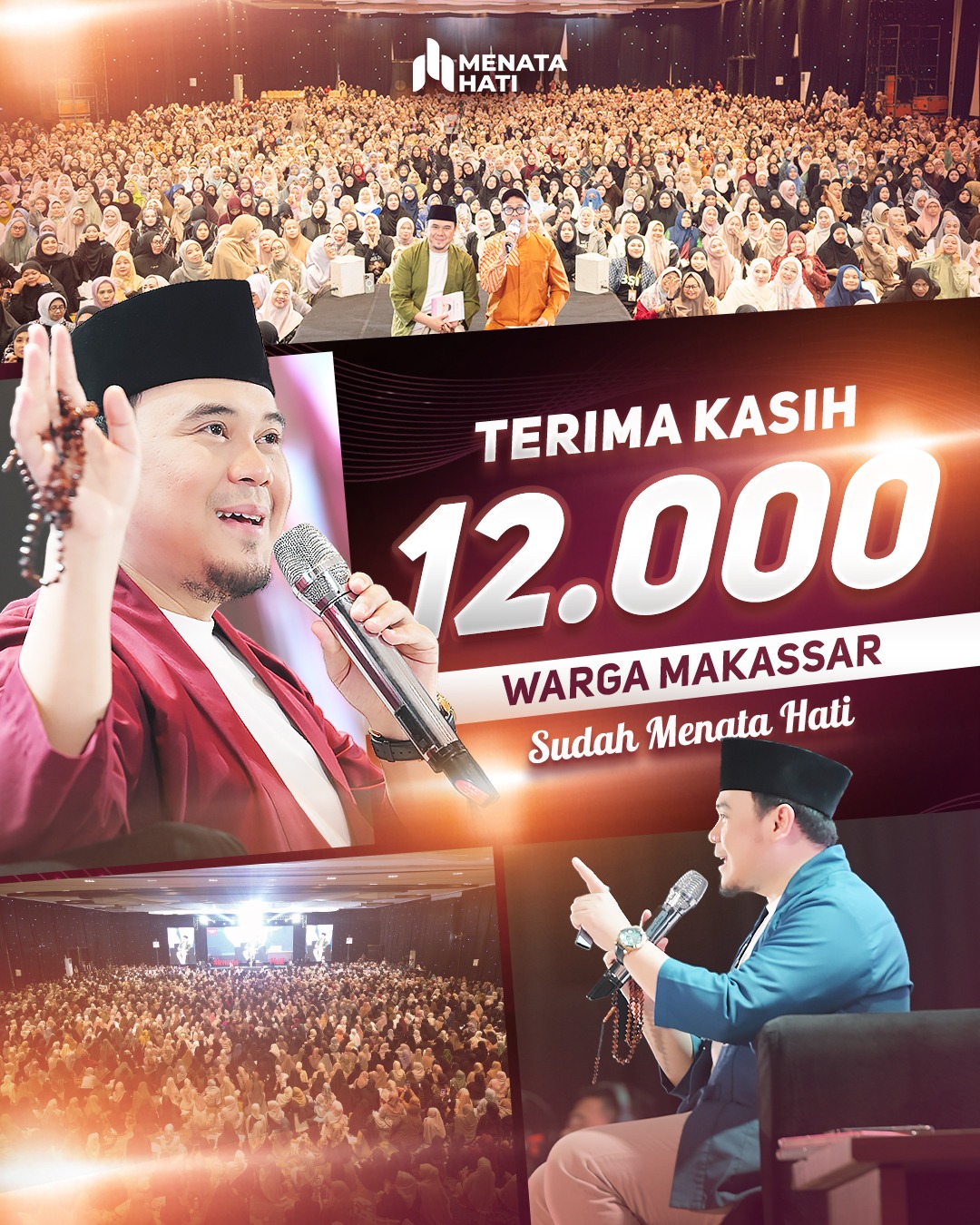 Makassar, 21 September 2025 – Kehadiran ribuan masyarakat di Claro Hotel Makassar pada Minggu, 21 September 2025 menjadi bukti tingginya antusiasme terhadap Menata Hati. Total 12.000 peserta mengikuti acara ini dalam tiga sesi, masing-masing dihadiri sekitar 4.000 orang.Kesuksesan Menata Hati Makass
